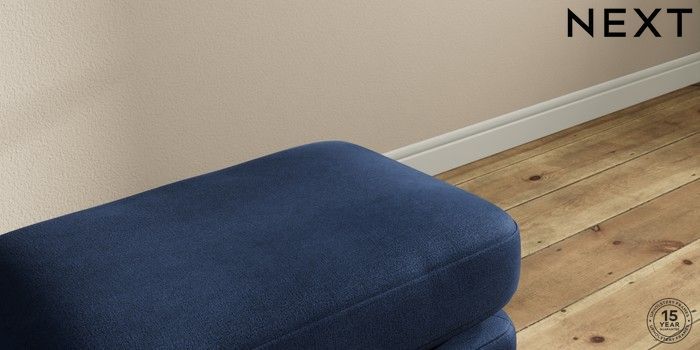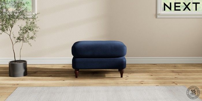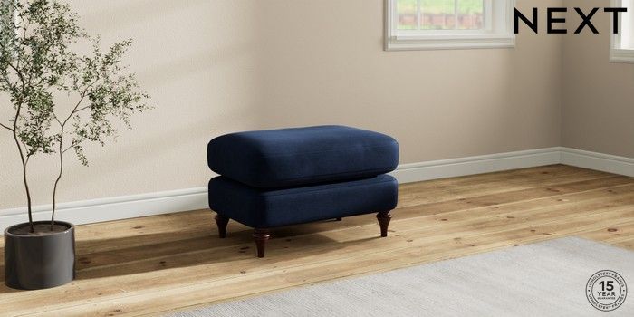7.2.10 Sadie Deep Relaxed Sit Footstool Luxe Chenille Navy Blue High Slim Turned - Dark Brown | Made Click here to use our website with more accessibility support, for example screen readers
