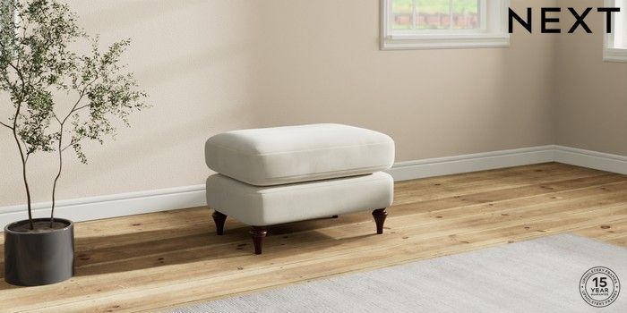 7.2.10 Sadie Deep Relaxed Sit Footstool Luxe Chenille Oyster High Slim Turned - Dark Brown | Made Click here to use our website with more accessibility support, for example screen readers