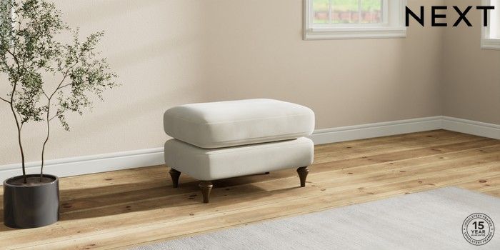 7.2.10 Sadie Deep Relaxed Sit Footstool Luxe Chenille Oyster High Slim Turned - Mid | Made Click here to use our website with more accessibility support, for example screen readers