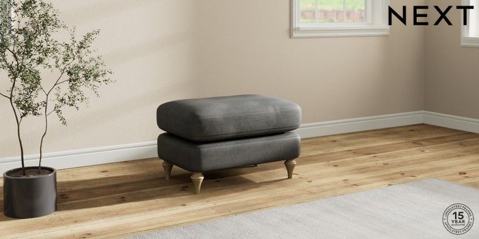 7.2.10 Sadie Deep Relaxed Sit Footstool Monza Faux Leather Easy Clean Dark Grey High Slim Turned - Light | Made Click here to use our website with more accessibility support, for example screen readers