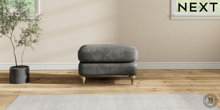 7.2.10 Sadie Deep Relaxed Sit Footstool Plush Chenille Dark Grey High Slim Turned - Light | Made Click here to use our website with more accessibility support, for example screen readers