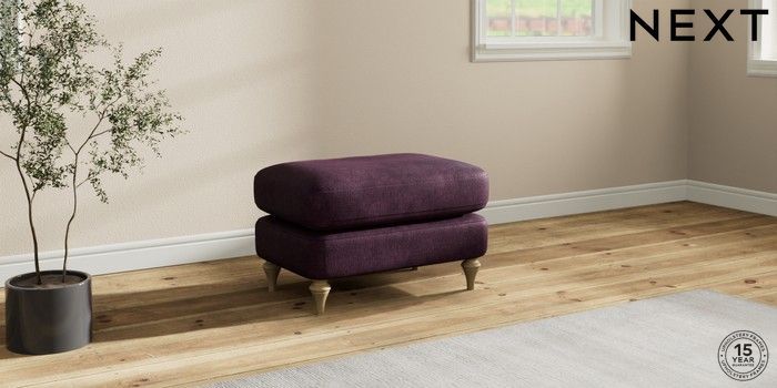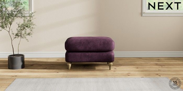 7.2.10 Sadie Deep Relaxed Sit Footstool Plush Chenille Dark Plum Purple High Slim Turned - Light | Made Click here to use our website with more accessibility support, for example screen readers