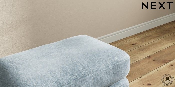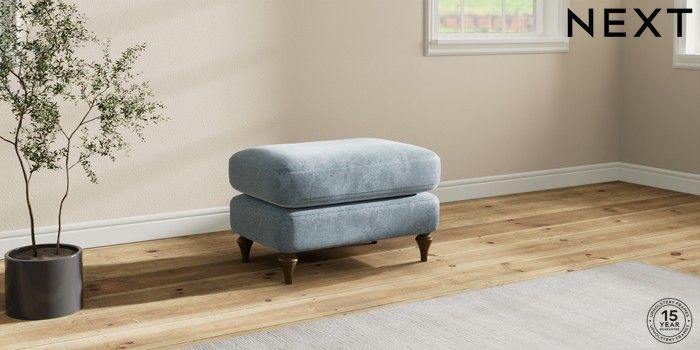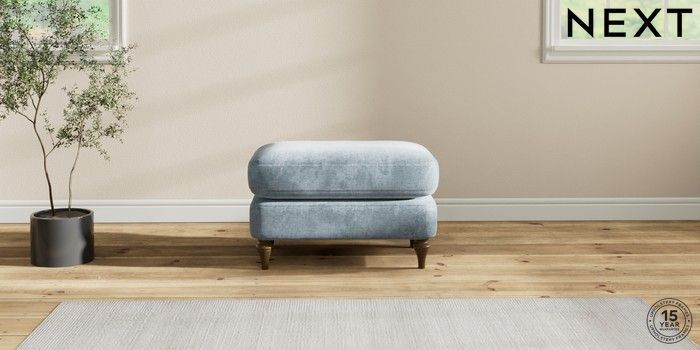 7.2.10 Sadie Deep Relaxed Sit Footstool Plush Chenille Light Blue High Slim Turned - Mid | Made Click here to use our website with more accessibility support, for example screen readers