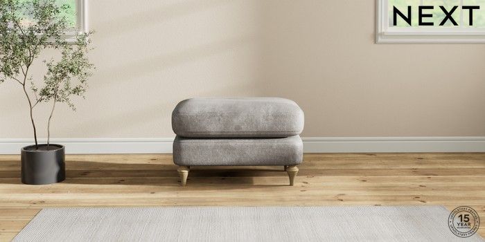 7.2.10 Sadie Deep Relaxed Sit Footstool Plush Chenille Light Grey High Slim Turned - Light | Made Click here to use our website with more accessibility support, for example screen readers