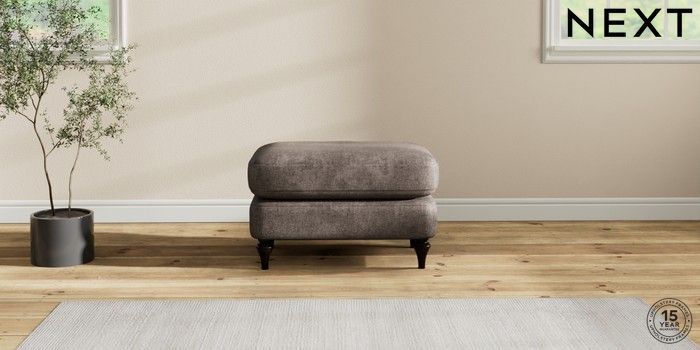 7.2.10 Sadie Deep Relaxed Sit Footstool Plush Chenille Mink Brown High Slim Turned - Dark | Made Click here to use our website with more accessibility support, for example screen readers