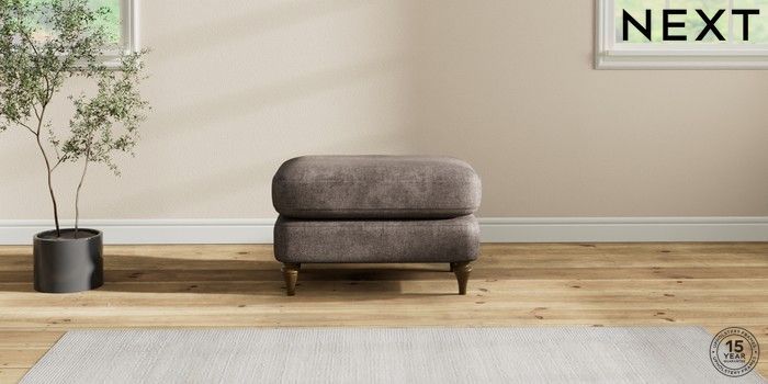 7.2.10 Sadie Deep Relaxed Sit Footstool Plush Chenille Mink Brown High Slim Turned - Mid | Made Click here to use our website with more accessibility support, for example screen readers
