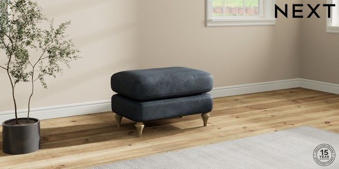 7.2.10 Sadie Deep Relaxed Sit Footstool Plush Chenille Slate Blue High Slim Turned - Light | Made Click here to use our website with more accessibility support, for example screen readers