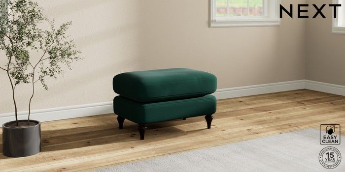 7.2.10 Sadie Deep Relaxed Sit Footstool Plush Velvet Easy Clean Bottle Green High Slim Turned - Dark | Made Click here to use our website with more accessibility support, for example screen readers