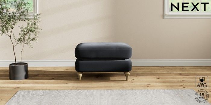 7.2.10 Sadie Deep Relaxed Sit Footstool Plush Velvet Easy Clean Charcoal Grey High Slim Turned - Light | Made Click here to use our website with more accessibility support, for example screen readers