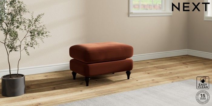 7.2.10 Sadie Deep Relaxed Sit Footstool Plush Velvet Easy Clean Ginger Orange High Slim Turned - Dark | Made Click here to use our website with more accessibility support, for example screen readers