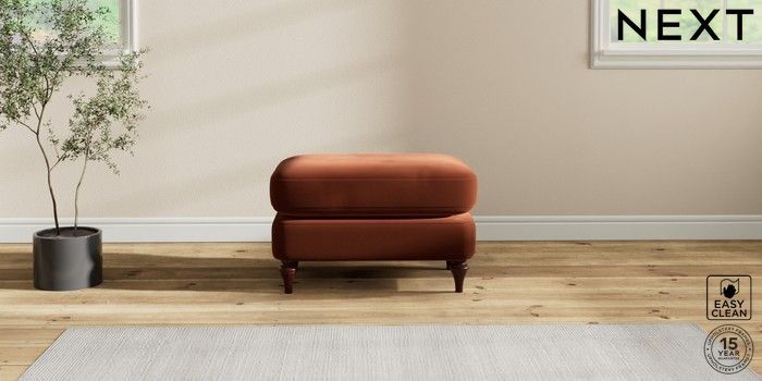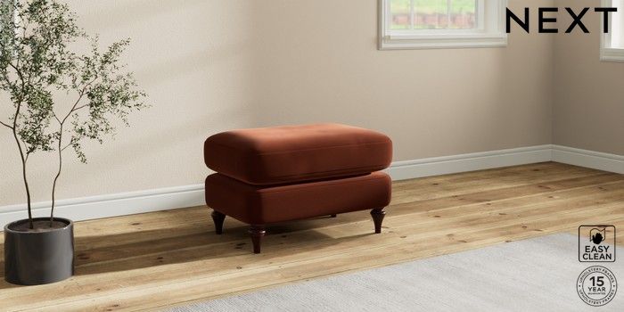 7.2.10 Sadie Deep Relaxed Sit Footstool Plush Velvet Easy Clean Ginger Orange High Slim Turned - Dark Brown | Made Click here to use our website with more accessibility support, for example screen readers