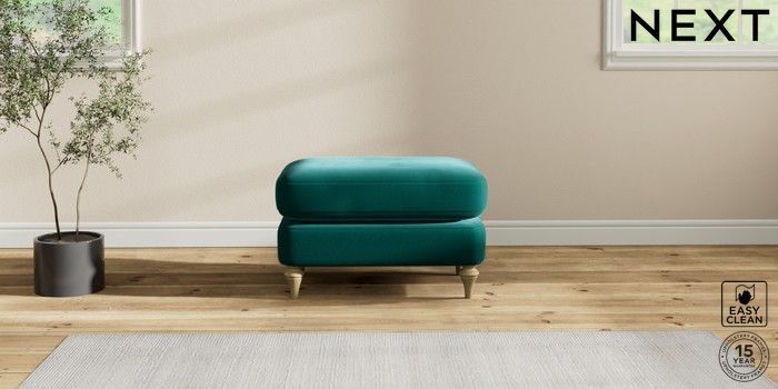 7.2.10 Sadie Deep Relaxed Sit Footstool Plush Velvet Easy Clean Juniper Green High Slim Turned - Light | Made Click here to use our website with more accessibility support, for example screen readers