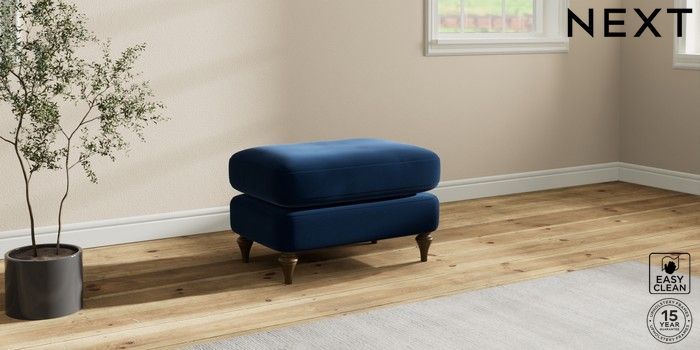 7.2.10 Sadie Deep Relaxed Sit Footstool Plush Velvet Easy Clean Navy Blue High Slim Turned - Mid | Made Click here to use our website with more accessibility support, for example screen readers