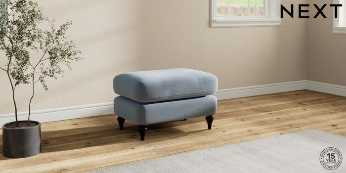 7.2.10 Sadie Deep Relaxed Sit Footstool Relaxed Linen Look Mid Blue High Slim Turned - Dark | Made Click here to use our website with more accessibility support, for example screen readers