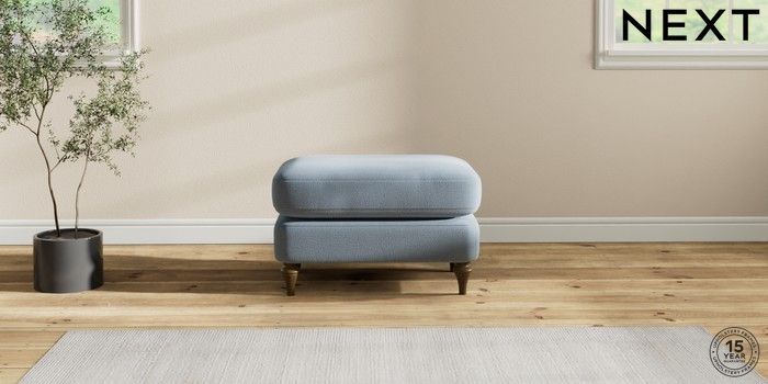 7.2.10 Sadie Deep Relaxed Sit Footstool Relaxed Linen Look Mid Blue High Slim Turned - Mid | Made Click here to use our website with more accessibility support, for example screen readers