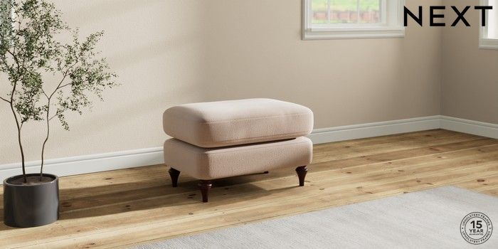 7.2.10 Sadie Deep Relaxed Sit Footstool Relaxed Linen Look Mid Natural High Slim Turned - Dark Brown | Made Click here to use our website with more accessibility support, for example screen readers