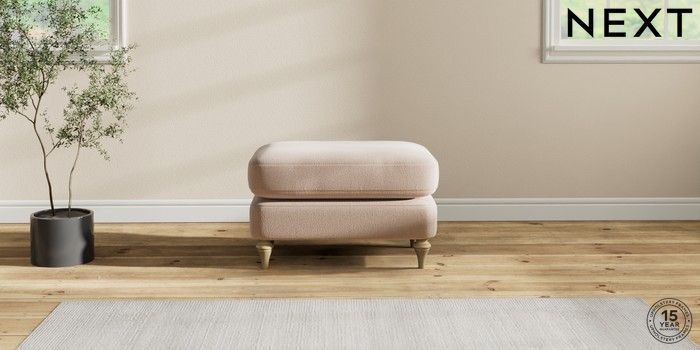 7.2.10 Sadie Deep Relaxed Sit Footstool Relaxed Linen Look Mid Natural High Slim Turned - Light | Made Click here to use our website with more accessibility support, for example screen readers