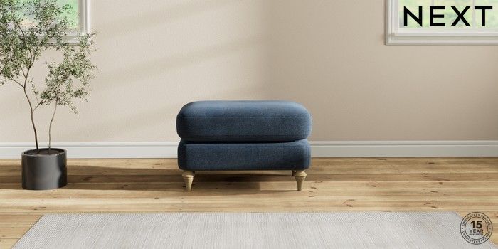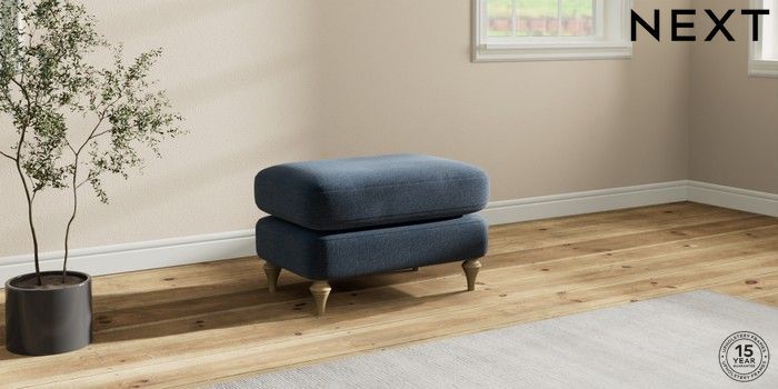 7.2.10 Sadie Deep Relaxed Sit Footstool Ripple Chenille Dark Blue High Slim Turned - Light | Made Click here to use our website with more accessibility support, for example screen readers