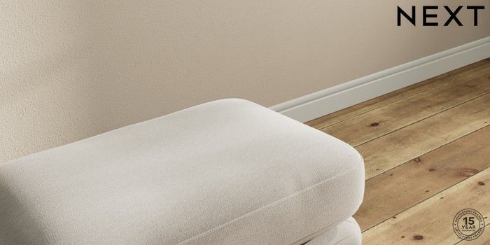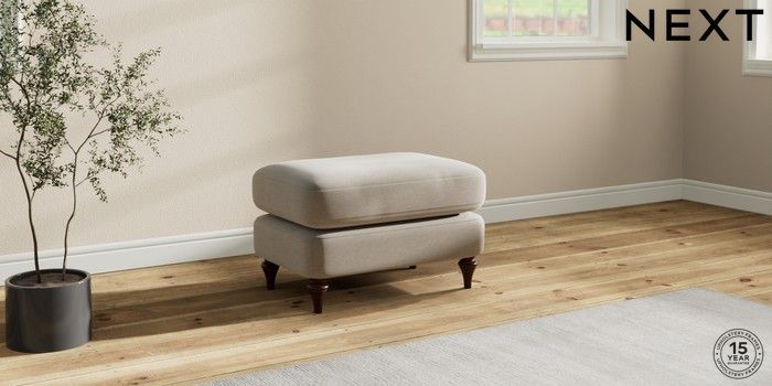 7.2.10 Sadie Deep Relaxed Sit Footstool Ripple Chenille Light Natural High Slim Turned - Dark Brown | Made Click here to use our website with more accessibility support, for example screen readers