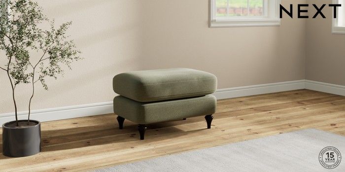 7.2.10 Sadie Deep Relaxed Sit Footstool Ripple Chenille Mid Moss Green High Slim Turned - Dark | Made Click here to use our website with more accessibility support, for example screen readers