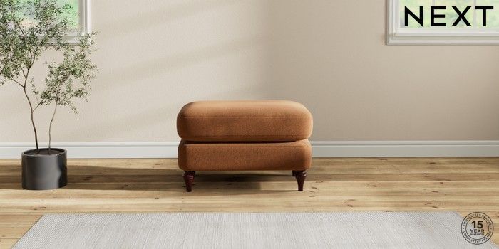 7.2.10 Sadie Deep Relaxed Sit Footstool Ripple Chenille Mid Rust Brown High Slim Turned - Dark Brown | Made Click here to use our website with more accessibility support, for example screen readers