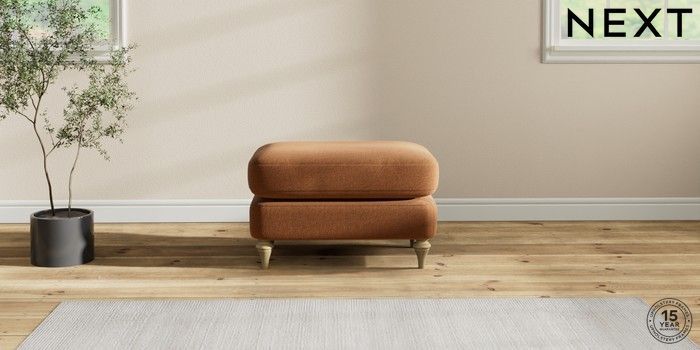 7.2.10 Sadie Deep Relaxed Sit Footstool Ripple Chenille Mid Rust Brown High Slim Turned - Light | Made Click here to use our website with more accessibility support, for example screen readers