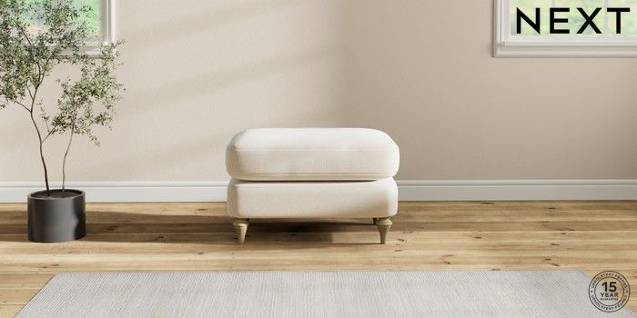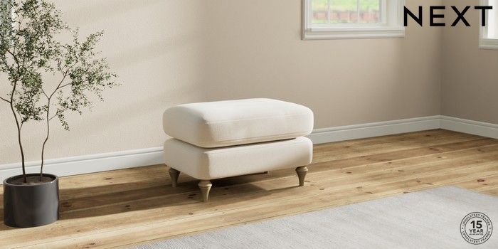 7.2.10 Sadie Deep Relaxed Sit Footstool Ripple Chenille Oyster High Slim Turned - Light | Made Click here to use our website with more accessibility support, for example screen readers