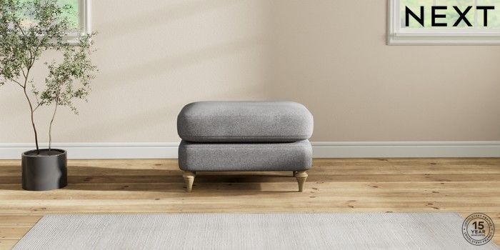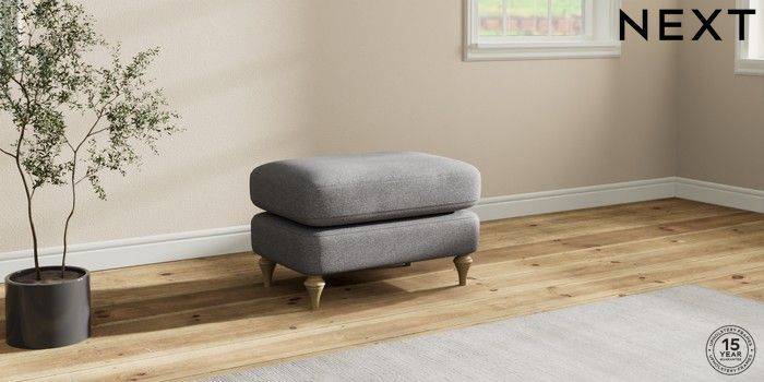 7.2.10 Sadie Deep Relaxed Sit Footstool Studio Chenille Mid Grey High Slim Turned - Light | Made Click here to use our website with more accessibility support, for example screen readers