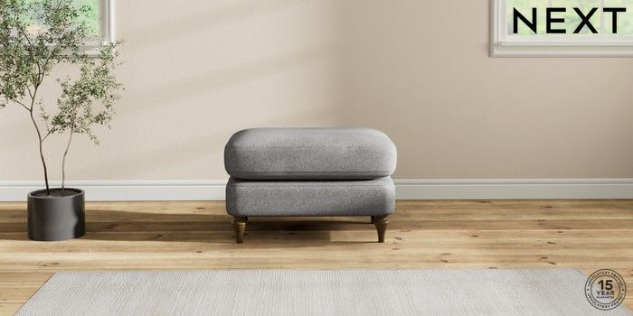 7.2.10 Sadie Deep Relaxed Sit Footstool Studio Chenille Mid Grey High Slim Turned - Mid | Made Click here to use our website with more accessibility support, for example screen readers