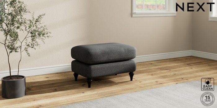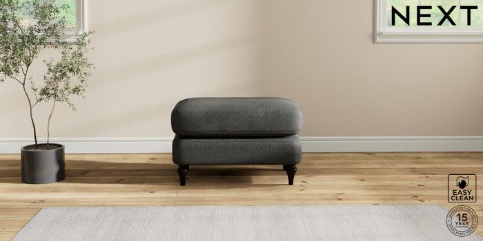 7.2.10 Sadie Deep Relaxed Sit Footstool Tweedy Blend Easy Clean Charcoal Grey High Slim Turned - Dark | Made Click here to use our website with more accessibility support, for example screen readers