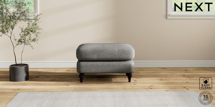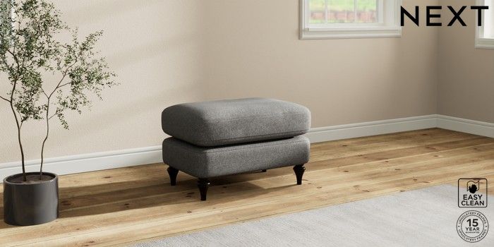 7.2.10 Sadie Deep Relaxed Sit Footstool Tweedy Blend Easy Clean Dark Grey High Slim Turned - Dark | Made Click here to use our website with more accessibility support, for example screen readers