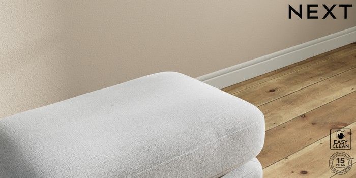 7.2.10 Sadie Deep Relaxed Sit Footstool Tweedy Blend Easy Clean Light Silver Grey High Slim Turned - Mid | Made Click here to use our website with more accessibility support, for example screen readers