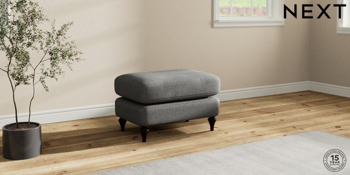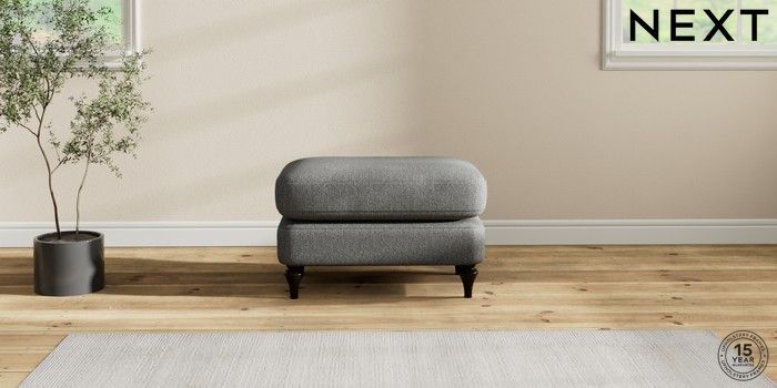 7.2.10 Sadie Deep Relaxed Sit Footstool Tweedy Chenille Dark Grey High Slim Turned - Dark | Made Click here to use our website with more accessibility support, for example screen readers