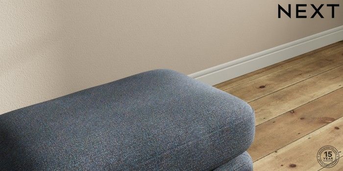 7.2.10 Sadie Deep Relaxed Sit Footstool Tweedy Chenille Navy Blue High Slim Turned - Dark Brown | Made Click here to use our website with more accessibility support, for example screen readers