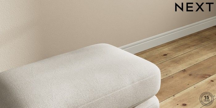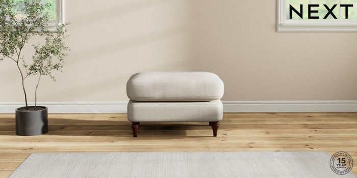 7.2.10 Sadie Deep Relaxed Sit Footstool Tweedy Chenille Oyster High Slim Turned - Dark Brown | Made Click here to use our website with more accessibility support, for example screen readers
