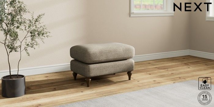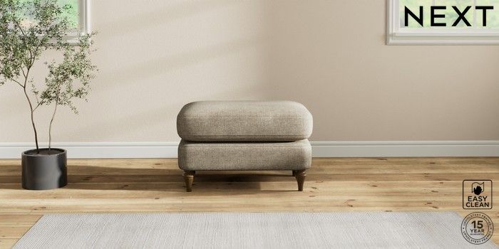 7.2.10 Sadie Deep Relaxed Sit Footstool Woven Chenille Easy Clean Mid Natural High Slim Turned - Mid | Made Click here to use our website with more accessibility support, for example screen readers