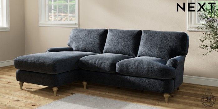7.2.10 Sadie Deep Relaxed Sit Medium Sofa Chaise - Left Hand Boucle Chenille Dark Slate Blue High Slim Turned - Light | Made Click here to use our website with more accessibility support, for example screen readers
