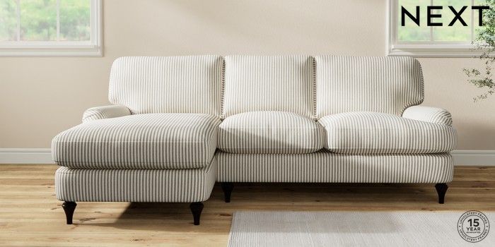 7.2.10 Sadie Deep Relaxed Sit Medium Sofa Chaise - Left Hand Chenille Stripe Moss Green High Slim Turned - Dark | Made Click here to use our website with more accessibility support, for example screen readers