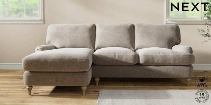 7.2.10 Sadie Deep Relaxed Sit Medium Sofa Chaise - Left Hand Chunky Boucle Easy Clean Dove High Slim Turned - Light | Made Click here to use our website with more accessibility support, for example screen readers