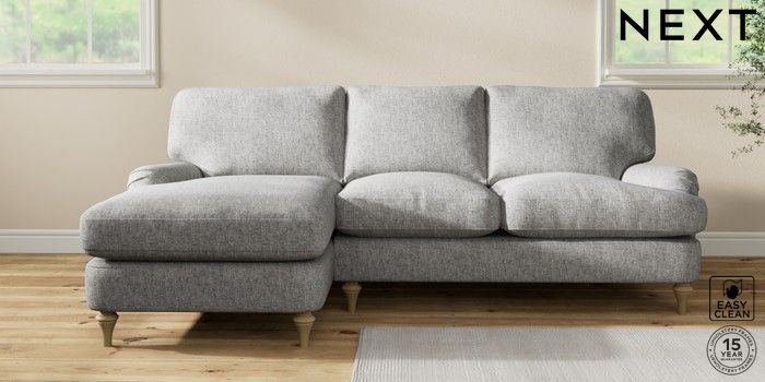 7.2.10 Sadie Deep Relaxed Sit Medium Sofa Chaise - Left Hand Chunky Boucle Easy Clean Light Grey High Slim Turned - Light | Made Click here to use our website with more accessibility support, for example screen readers