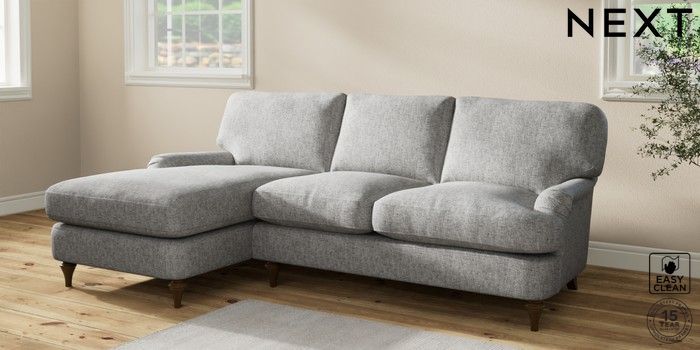 7.2.10 Sadie Deep Relaxed Sit Medium Sofa Chaise - Left Hand Chunky Boucle Easy Clean Light Grey High Slim Turned - Mid | Made Click here to use our website with more accessibility support, for example screen readers