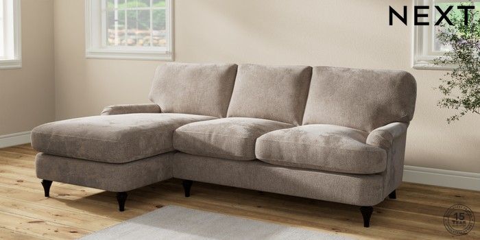 7.2.10 Sadie Deep Relaxed Sit Medium Sofa Chaise - Left Hand Chunky Chenille Light Dove High Slim Turned - Dark | Made Click here to use our website with more accessibility support, for example screen readers