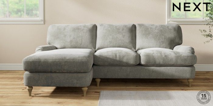 7.2.10 Sadie Deep Relaxed Sit Medium Sofa Chaise - Left Hand Chunky Chenille Light Grey High Slim Turned - Light | Made Click here to use our website with more accessibility support, for example screen readers