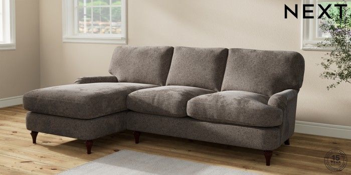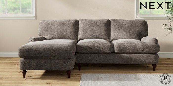 7.2.10 Sadie Deep Relaxed Sit Medium Sofa Chaise - Left Hand Chunky Chenille Mink Brown High Slim Turned - Dark Brown | Made Click here to use our website with more accessibility support, for example screen readers