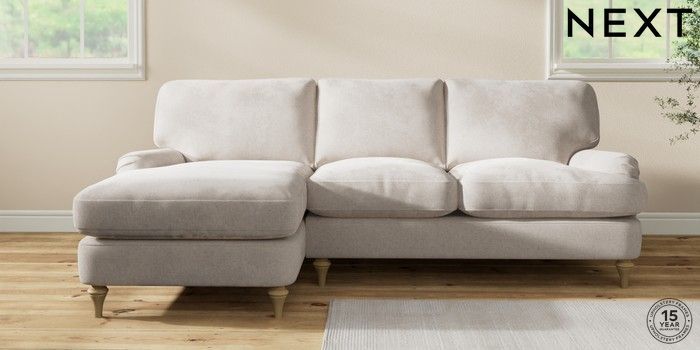 7.2.10 Sadie Deep Relaxed Sit Medium Sofa Chaise - Left Hand Chunky Chenille Oyster High Slim Turned - Light | Made Click here to use our website with more accessibility support, for example screen readers