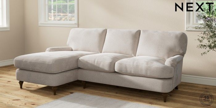 7.2.10 Sadie Deep Relaxed Sit Medium Sofa Chaise - Left Hand Chunky Chenille Oyster High Slim Turned - Mid | Made Click here to use our website with more accessibility support, for example screen readers