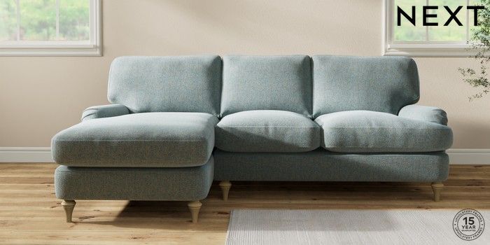 7.2.10 Sadie Deep Relaxed Sit Medium Sofa Chaise - Left Hand Chunky Marl Mid Blue High Slim Turned - Light | Made Click here to use our website with more accessibility support, for example screen readers