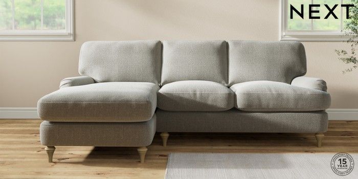 7.2.10 Sadie Deep Relaxed Sit Medium Sofa Chaise - Left Hand Chunky Texture Dove High Slim Turned - Light | Made Click here to use our website with more accessibility support, for example screen readers