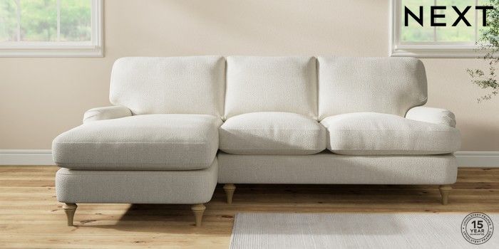7.2.10 Sadie Deep Relaxed Sit Medium Sofa Chaise - Left Hand Chunky Texture Oyster High Slim Turned - Light | Made Click here to use our website with more accessibility support, for example screen readers