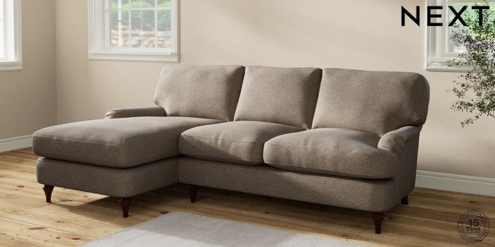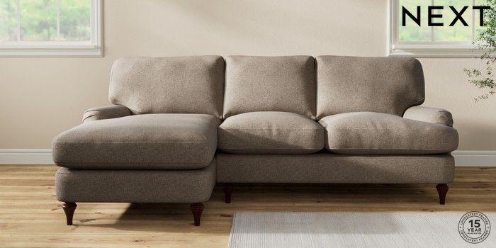 7.2.10 Sadie Deep Relaxed Sit Medium Sofa Chaise - Left Hand Chunky Weave Dark Natural High Slim Turned - Dark Brown | Made Click here to use our website with more accessibility support, for example screen readers